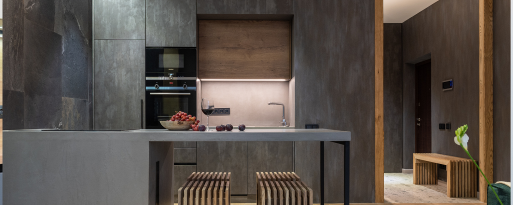 Además, los materiales resistentes al agua y al calor son esenciales para zonas de trabajo intensivo, como encimeras y frentes de cocina.